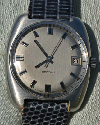 Condizione 1 (ottimo) - Bellissimo orologio Record (sotto marca Longines) anni '70, eccellent in tutte le sue parti, in quanto sembra un fondo di magazzino mai indossato, con movimento carica manuale perfettamente funzionante (viene anche rilasciata garanzia scritta valevole per mesi 12). Il vetro non ha alcun graffio, cassa acciaio dimensioni 41x36 mm. esclusa la corona originale, fondello in acciaio a vite, il cinturino è usato non marcato. Il quadrante argentè con indici in rilievo è perfetto. L’orologio è completamente originale. Il prezzo per questo orologio è inferiore a 450 Euro!! Garantisco la massima serietà e veridicità dell’oggetto.